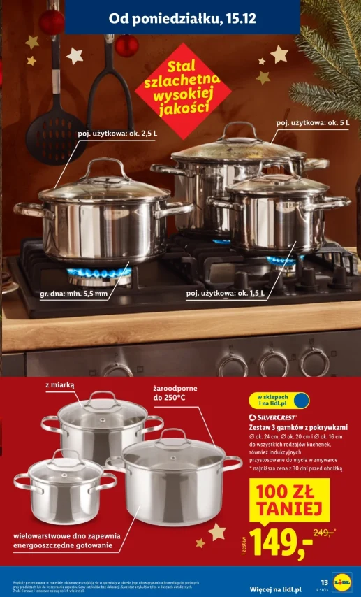Zbliżające się święta to doskonały czas, aby pomyśleć o prezentach oraz niezbędnych produktach do domu. Lidl, jak zawsze, wychodzi naprzeciw oczekiwaniom swoich klientów, oferując wyjątkową promocję na garnki SilverCrest. Od 15 grudnia do 21 grudnia, a może nawet do wyczerpania zapasów, można zakupić komplet garnków ze stali nierdzewnej w cenie niższej o 100 zł! To nie lada okazja, która zadowoli każdego, kto szuka funkcjonalnych, ale i eleganckich akcesoriów do kuchni, Santeos.pl podaje.